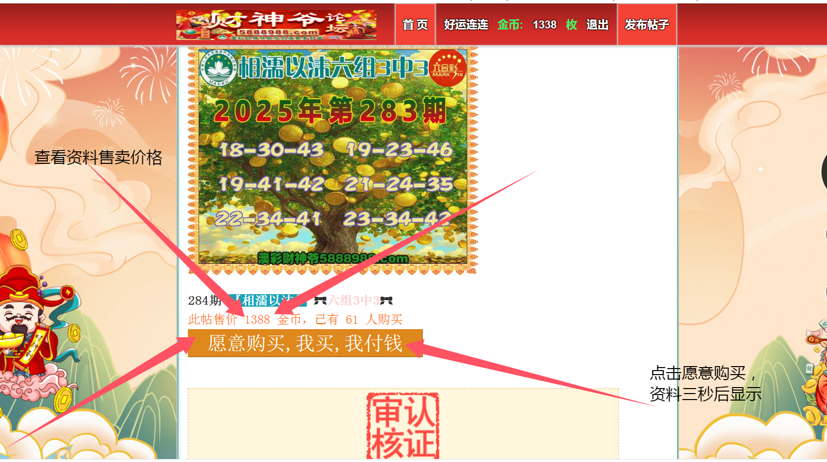 澳彩财神爷担保:凡购买本论坛同一条资料连错三期可联系管理员核实申请补一期金币!